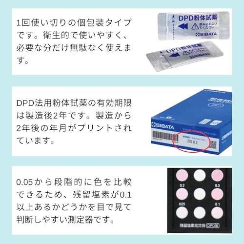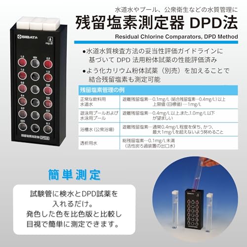 比色表や試験管もついているので、塩素濃度を調べるのはこれが一番安く済む方法だと思います。